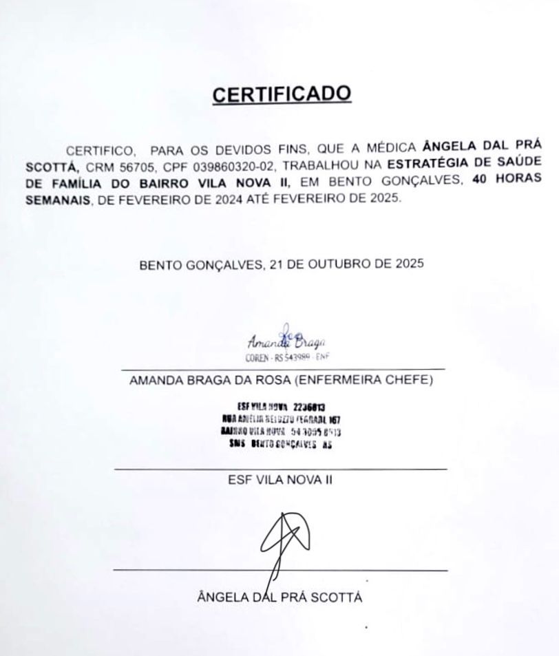 - Estratégia de saúde da família (ESF) Vila Nova II - Bento Gonçalves/RS (desde fevereiro de 2024 até março de 2025)